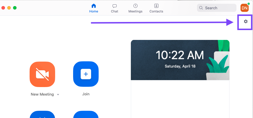 - Make sure you are on the "Home" tab of Zoom Desktop client (screenshot)