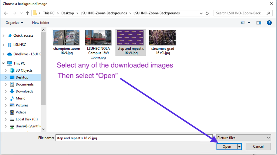 - Download and Unzip the LSU Health New Zoom Backgrounds (restricted to LSUHSC users)